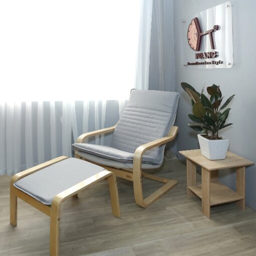 Combo | POANG ARMCHAIR | plywood bạch dương/vải cotton | ghi | R67xS132xC100 cm